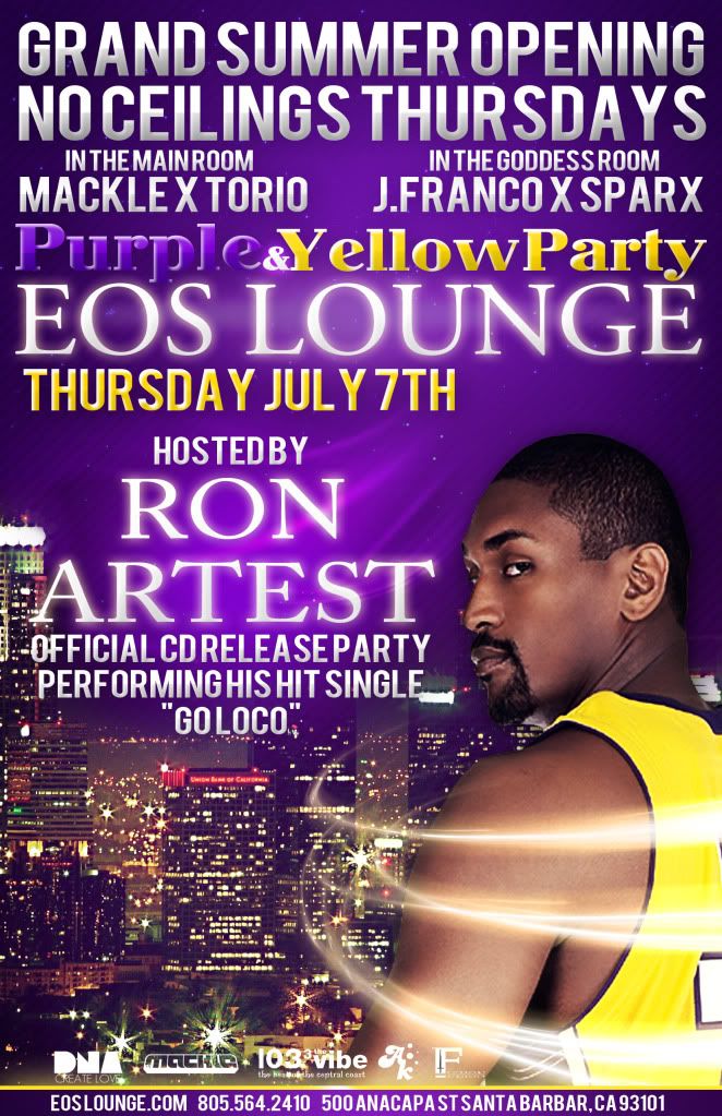 Please be advised that the Ron Artest "Go Loco" Album Release Party has been postponed to next Thursday July 7th due to Ron Artest having an emergency & not being able to make the event. Your passes & tickets will still be honored.